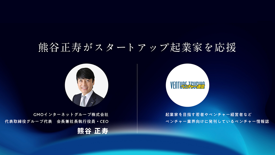 「ベンチャー通信」発行人兼編集長 明石 智義(慶應OB)とGMOインターネットグループ熊谷の思いが一致したことから始まった、スタートアップ企業家応援プログラム。